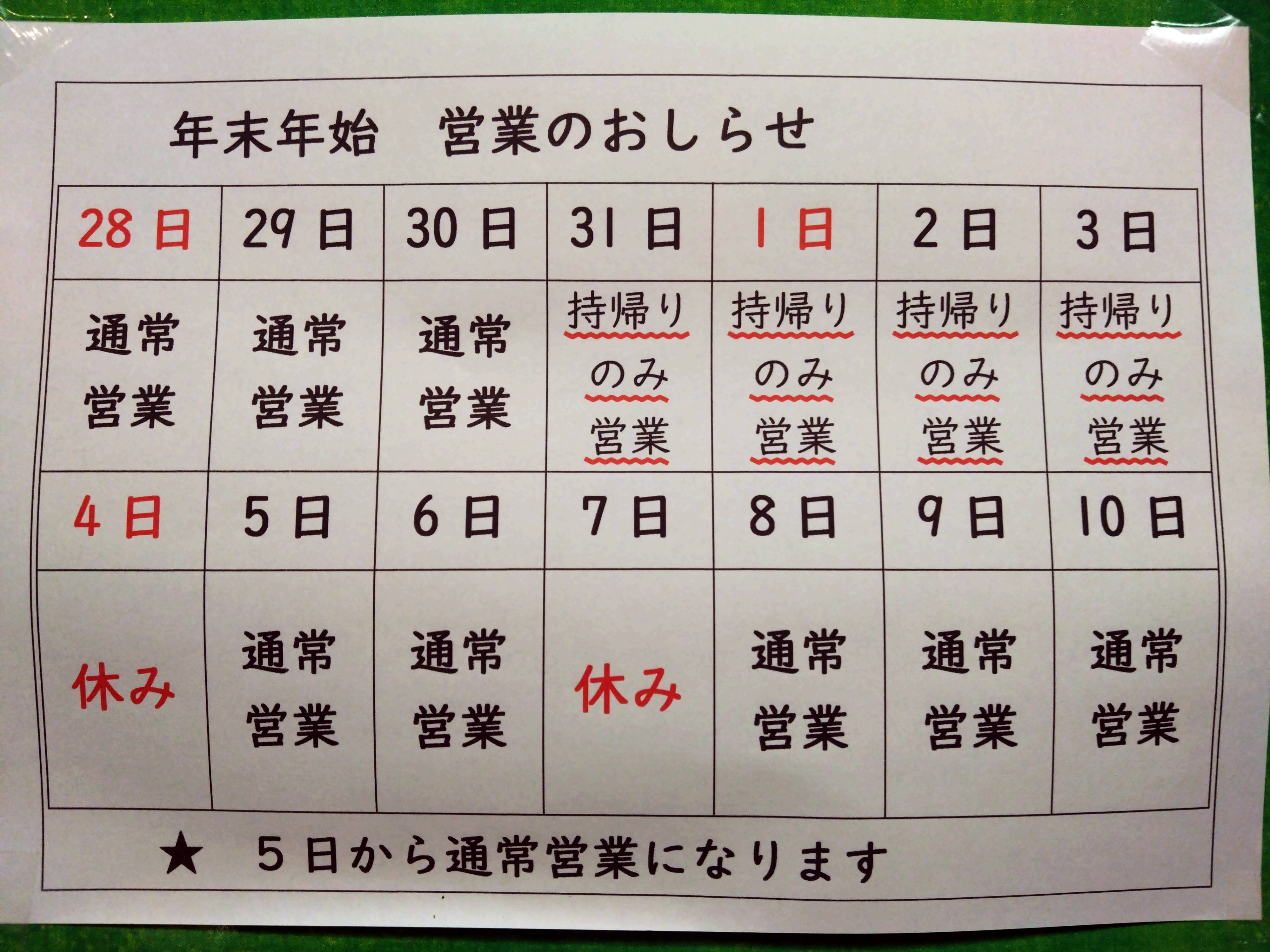| 定休日 | 水曜日、第一・第三火曜日 |